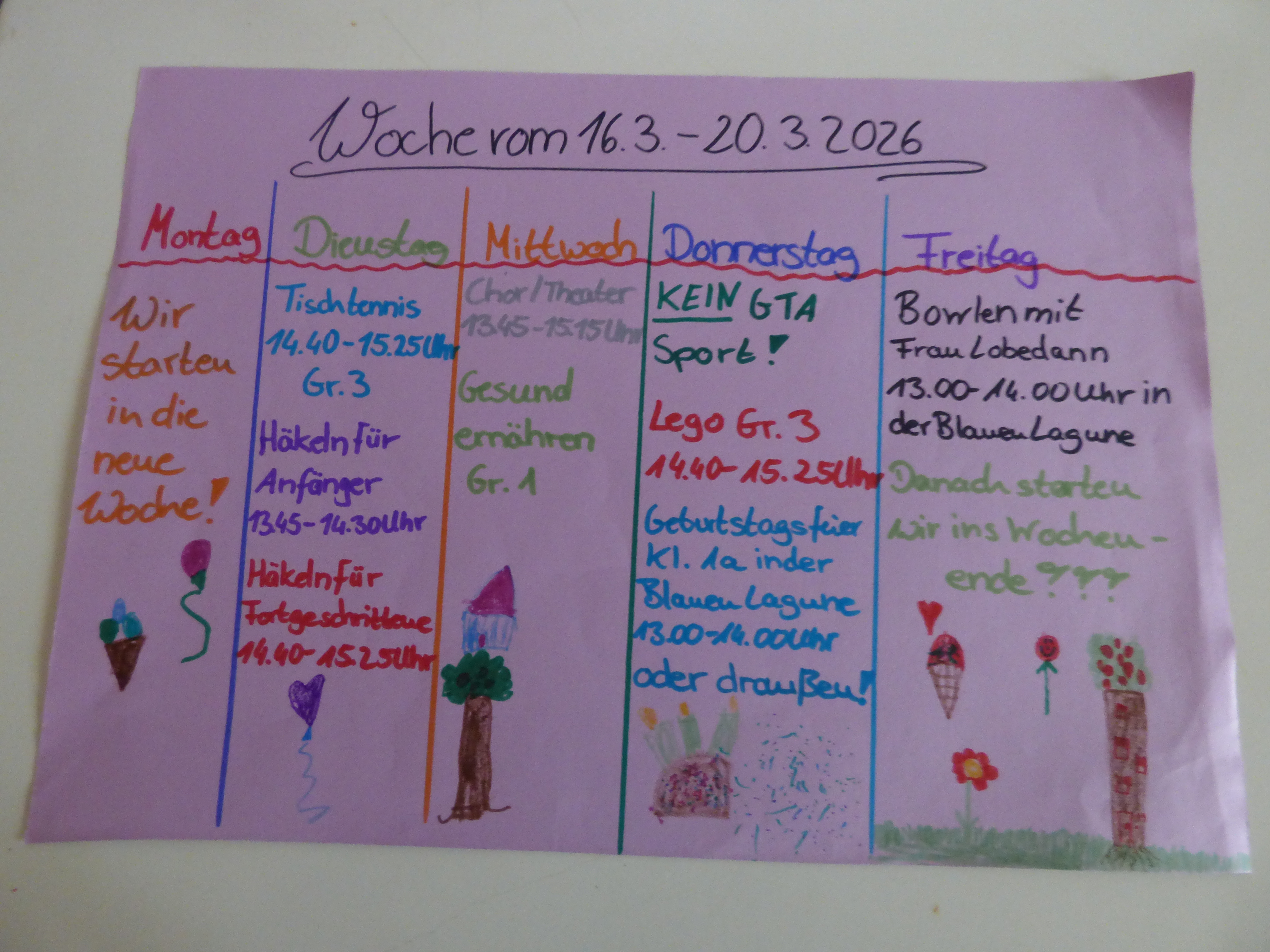 Die Kinder haben die Möglichkeit die Hausaufgaben im eigenen Klassenverband zu erledigen. Unsererseits erfolgt eine Kontrolle auf Erfüllung im Rahmen der Zeitvorgabe, nicht auf Richtigkeit.