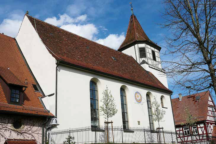 Um 1480 wird vom Umbau der Kapelle zur Kirche berichtet, die Johannes dem Täufer geweiht wurde. Die Glocke, die noch heute zum Gottesdienst ruft, hat ein Gewicht von 540 kg. Sie stammt aus dem Jahre 1489 und ist damit die älteste Glocke im Kreis Ludwigsburg.